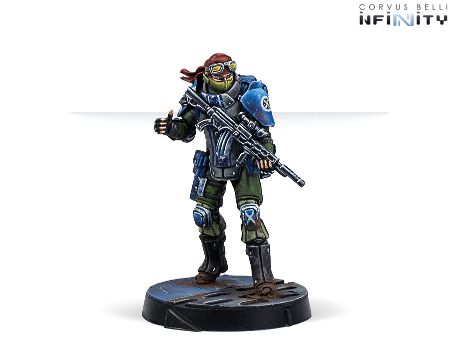 The Vostok included in this box is a plastic miniature from Corvus Belli's new plastic line.