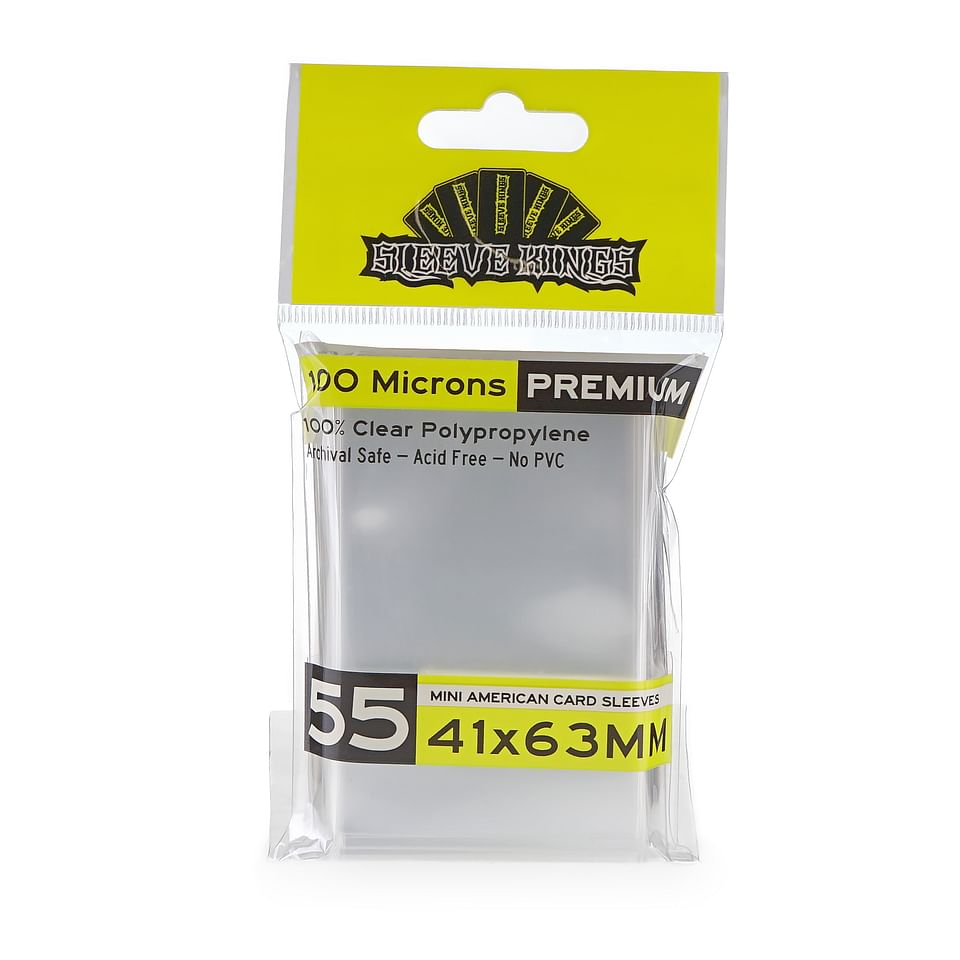 The pack contains 55 premium clear card sleeves from Sleeve Kings measuring 41 x 63 mm. It is suitable, for example, for cards from the games Civilization, Talisman, Twilight Imperium, World of Warcraft, etc.