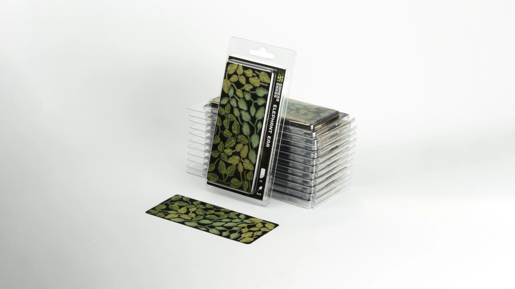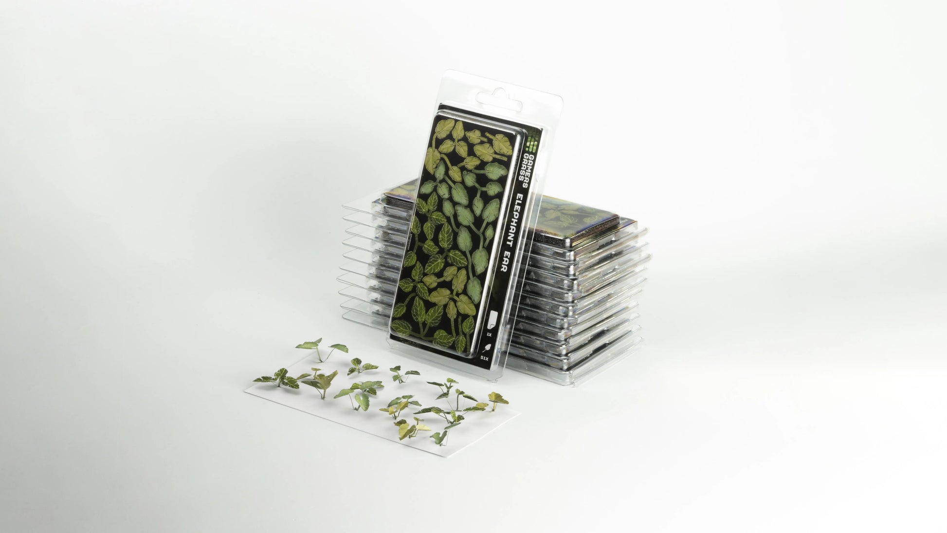 This sheet contains 51 different colored and sized elephant ear leaves for your scale models, hobby figures and scenic dioramas.