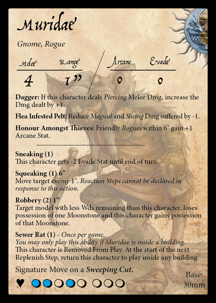 1 x Muridae, Gnome Rogue Miniature and Stat Card