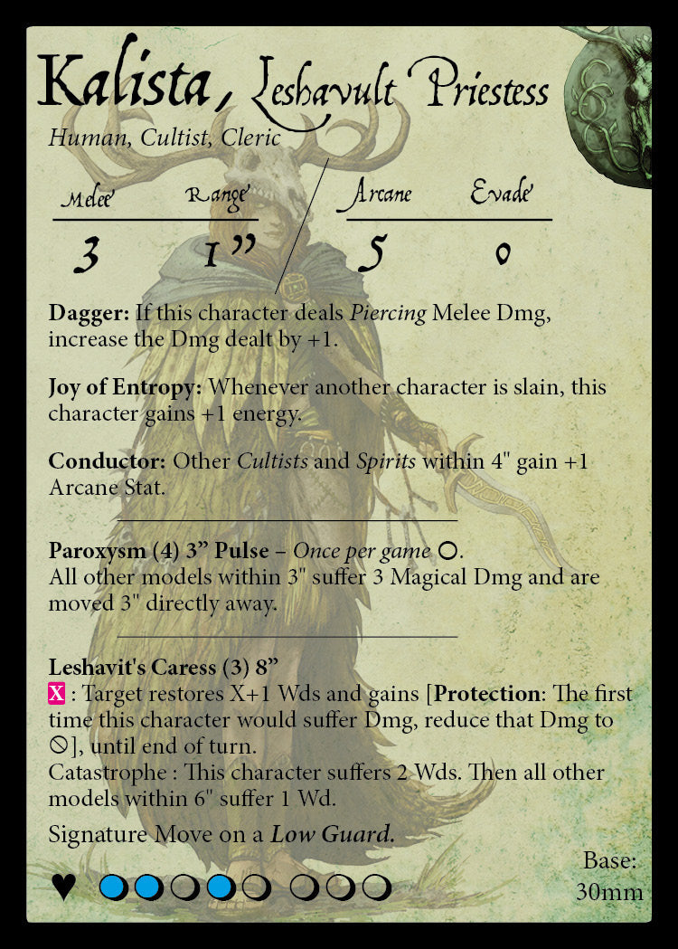 1 x Kalista, Leshavult Priestess Miniature and Stat Card